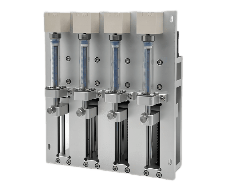 SDP-01 Row Syringe Pump realizes 2~6 pumps in row and each pump is driven independently, which greatly reduces the volume of the pump and is convenient for users to install.